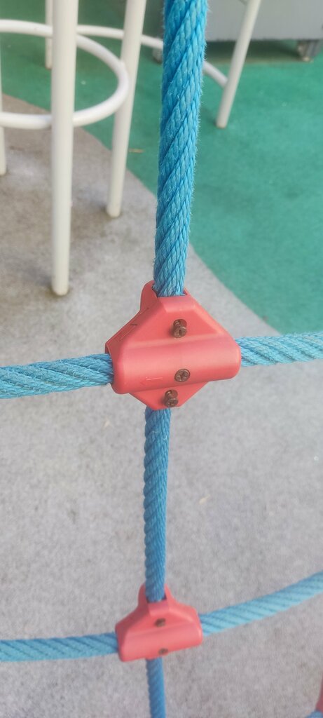 Черный саморезы на детской площадке, это как минимум небезопасно. На верёвочно-канатной лестнице видимо отремонтировали чем смогли, а то что ржавые саморезы торчат от всюду и ребенок может пораниться никого не волнует. Саморезы спокойно выкручиваются пальцами.