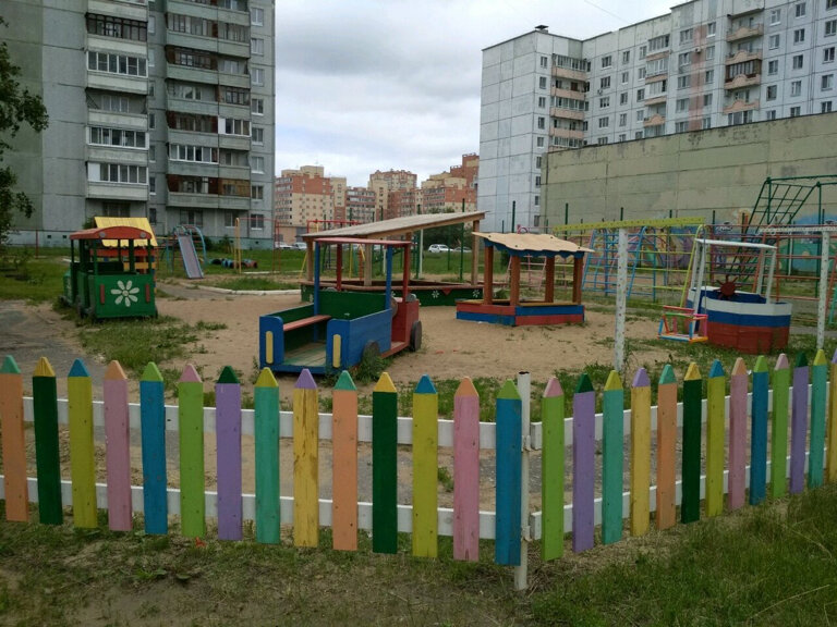 Площадка в ужасном состоянии. Трава по пояс всё лето, никаких современных игровых тренажёров для детей нет . Всё, что было лет эдак 35 назад, во времена СССР, сделано, так и стоит до сих пор. Стыд и позор!!!!