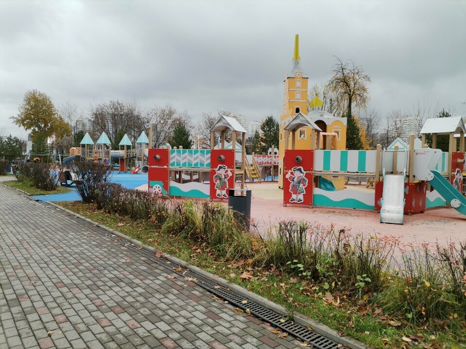 Вроде все хорошо и красиво,много площадок разных,но какое то все неудобное,ребенок 2 года упал несколько раз,хотя на других площадках легко играет.Плюс совсем мало тени,огромные открытые пространства.Как то нам все это показалось неуютно.