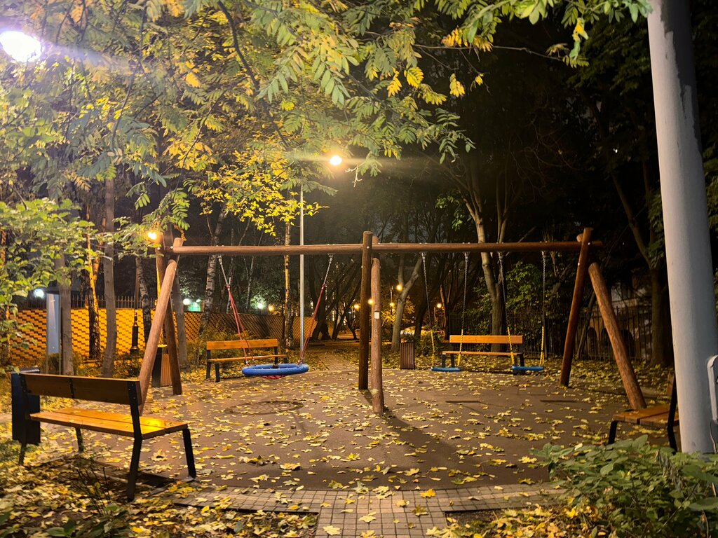 Только 3 качели и 4 лавочки. Вокруг много домов, 16 этажка, садики и школы и нет детской площадки детям.