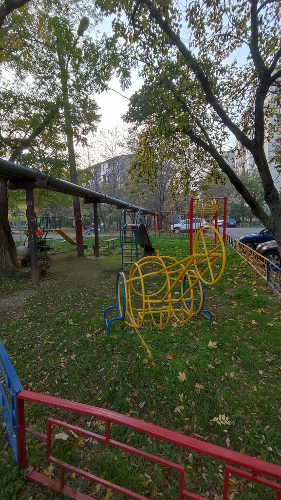 Все детство провел на этой площадке. По сей день осталась совестка горка и колесо на котором можно лазить.
