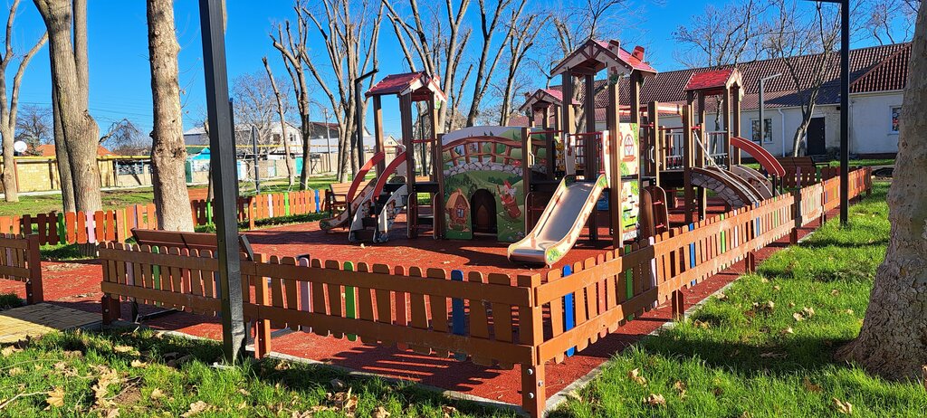 Очень хорошая детская площадка. Качели,горки, для детей. Лавочки ,клумбы с цветами. Рядом сельский клуб и библиотека- все ,что нужно для комфортного времяпровождения