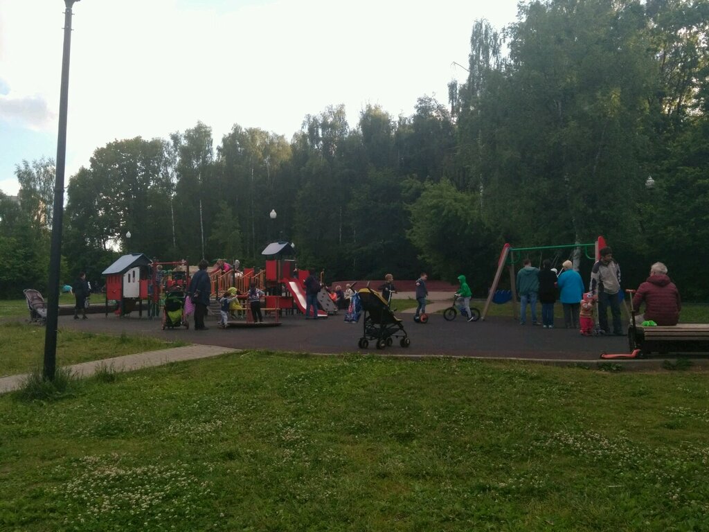 Большой плюс, что нет песочницы. Покрытие - чёрная резина. Горки для малышей