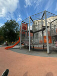 Классная новая площадка! Все целое, яркое, разноформатное. Лазалки, горки, есть часть для малышей. Хорошо продуманная безопасность - ограничения, заборчики, сетки.
