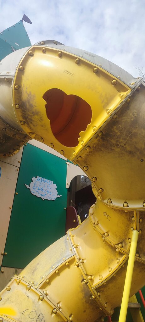the slide is broken, painted, not safe for children, there is nothing to do with it, they just closed it from the top and the children do not understand how to get into the slide they climb and get stuck