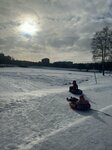 Хорошая детская площадка, много скамеек, зимой можно покататься на ватрушках. По выходным приводят пони Ириску
