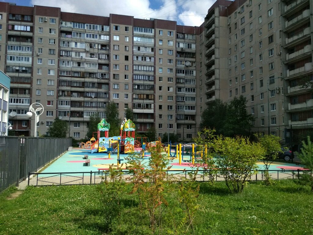 Площадка очень хорошая, большая. Есть спортивные тренажёры, теннисный стол. Дети любят эту площадку. Целых 4 качели, дети не стоят у друг друга над душой.) Горка есть для самых маленьких и для детей постарше, что очень удобно.