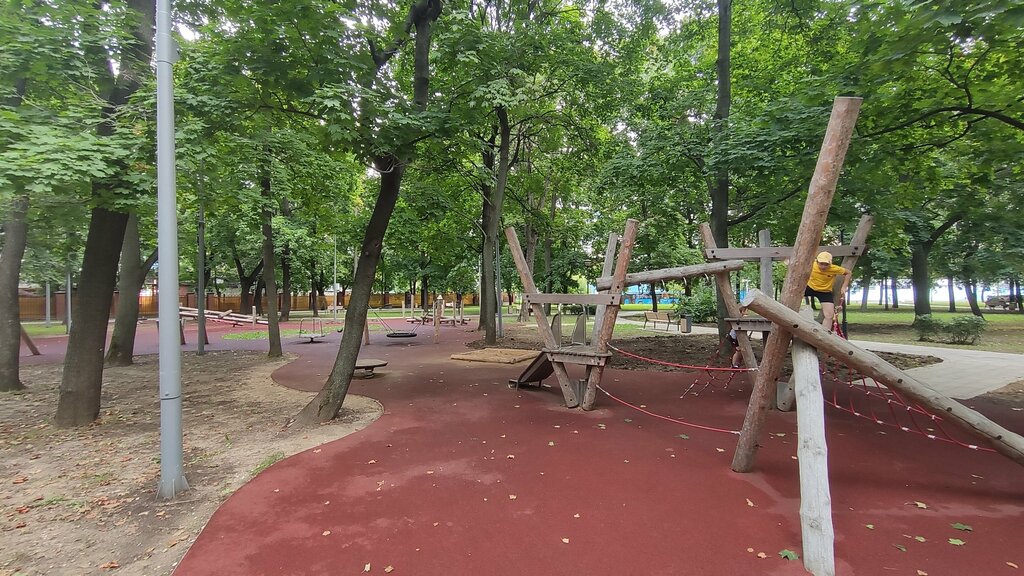 Необычная новая детская площадка в эко-стиле (фото на яндексе уже не актуально). Всё сделано из дерева: качалка-бревно, пеньки попрыгать, пара небольших горочек, различные лазилки-бревна, качели. А-ля в русском народном бревенчатом дизайне. Надолго активные дети тут не задержатся, но всегда заглядываем по дороге к метро)
