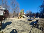 Классная площадка стала после реконструкции! Большой городок с препятствиями и огромной горкой. Качели-гнезда, большая песочница, тарзанка. Интересно и малышам, и детям постарше. Летом есть тенек-вокруг деревья. Недалеко остановка общественного транспорта 👍 Минус только, что туалетов рядышком нет.
