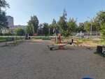 Скудненькая детская площадка. Не безопасно рядом довольно интенсивное движение машин, а также пивной бар.