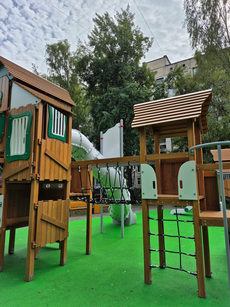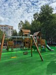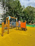 Хорошая новая площадка. Песочница, Качели, горки - покрытие. Но убирают так же, как во всем районе.