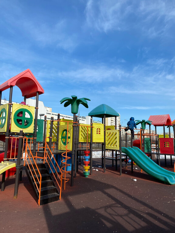 Бесплатная городская детская площадка. Новая, красивая, интересная. Рядом поменьше и подальше от дороги