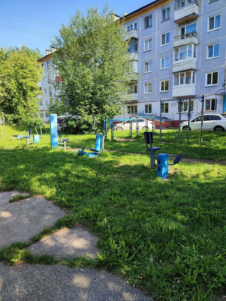 Хорошии тренажёры на свежем воздухе, красивая детская площадка