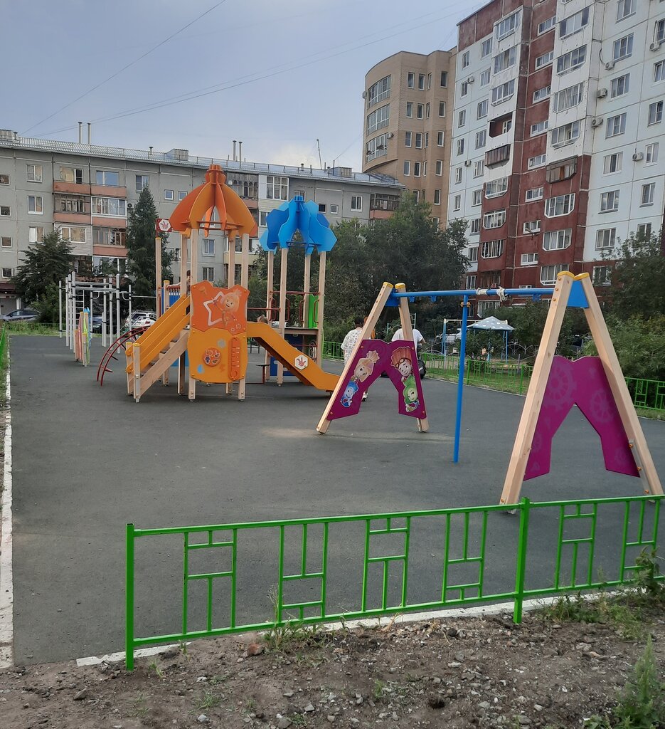 Хорошая, добротная площадка, подобных площадок по городу становится больше и больше. Ребятишкам удобно, зимой неплохая горка. Единственный минус - когда из-за особенности расположения домов сильно ветрено при северном ветре