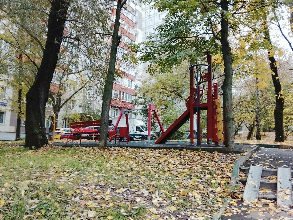 Детские площадки в этом районе есть и обустроены типовыми страшненькими модулями. Могли для детей посимпатичнее сделать! Минус звезда!