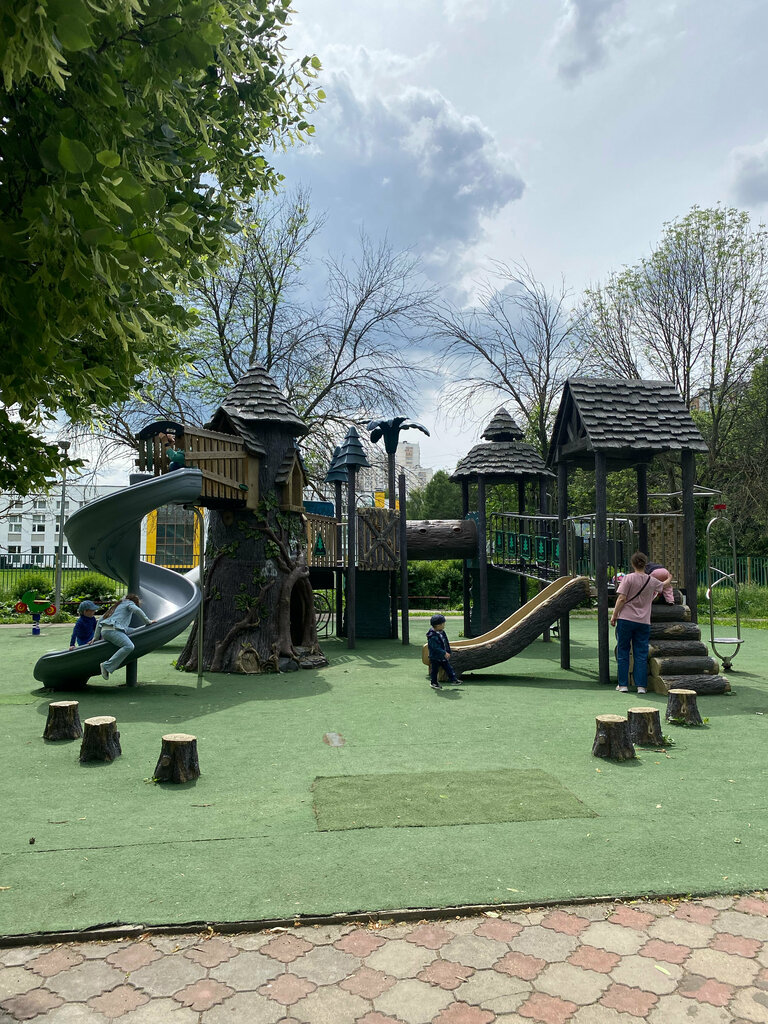 Хорошая площадка , яркая, много развлекалок для детей. Вокруг деревья, тихое местечко.