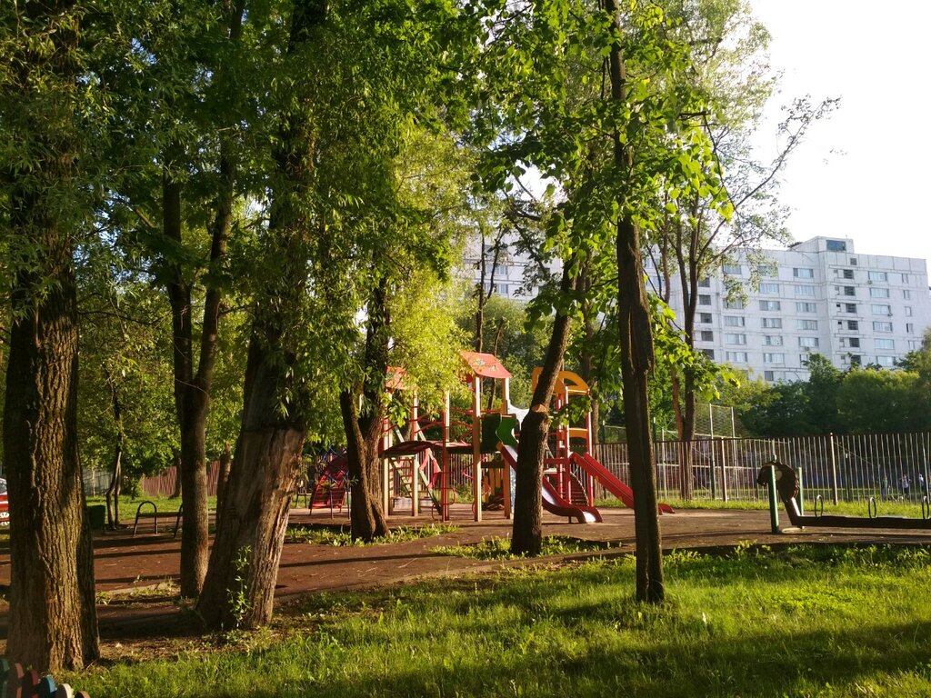 На этом доме 3 игровых площадки,для детей разного возраста,летом зелено,места для отдыха тоже есть