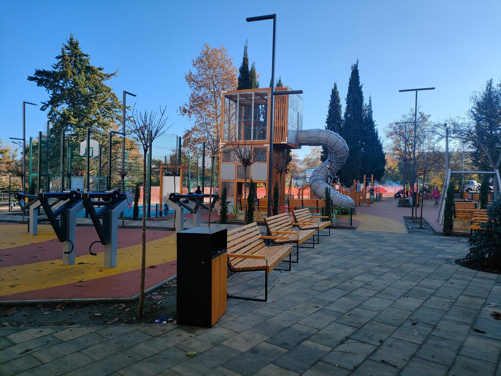 Классная площадка, но уже сломаны некоторые качели, песка в песочнице почти нет, частенько мусор валяется по площадке и полные урны. Задумка площадки хорошая, но есть моменты, которые хотелось бы, чтобы исправили.