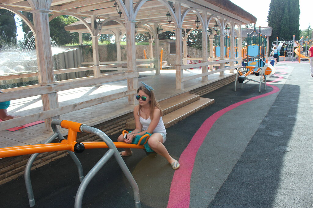 отличная детская площадка - много активности для детей перед бассейном