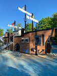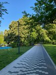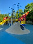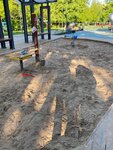 Прекрасная площадка, много локаций для детей разного возраста, песочница, качели, горки, место, где можно запустить воздушного змея, поиграть в бадминтон.