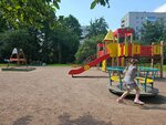 Есть качели, карусель и небольшой домик полазить. Чисто и аккуратно