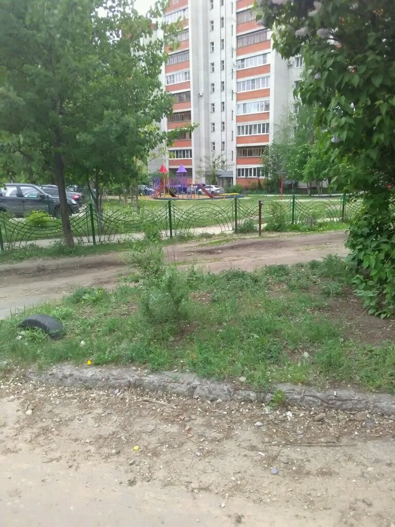 Площадка сама по себе хорошая, но очень травмоопасная! Высокие железные ступеньки и сама по себе несёт опасность для детей младшего возраста, можно с нее упасть и провалиться, так как сломалась деревяшка! Хотелось бы, чтобы УК отремонтировала ее или сделали более современную площадку!