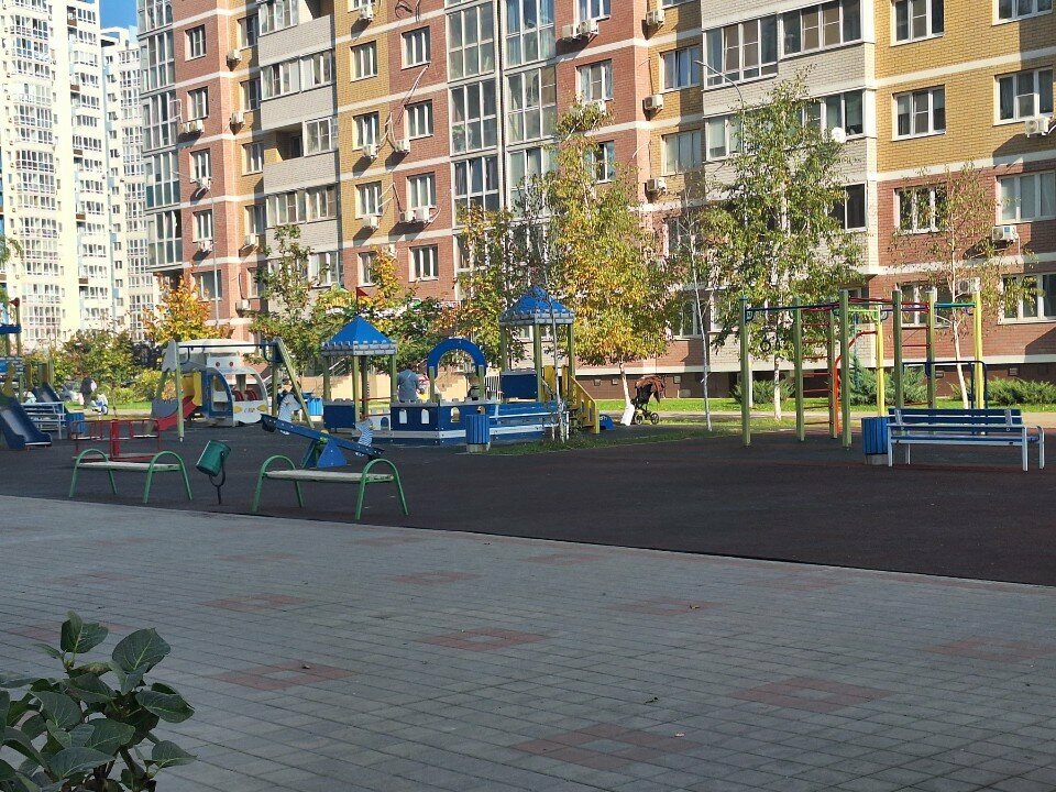 Отличная игровая площадка с тренажерами песочницей есть стол для настольного теннис са всегда ухоженная территория!!