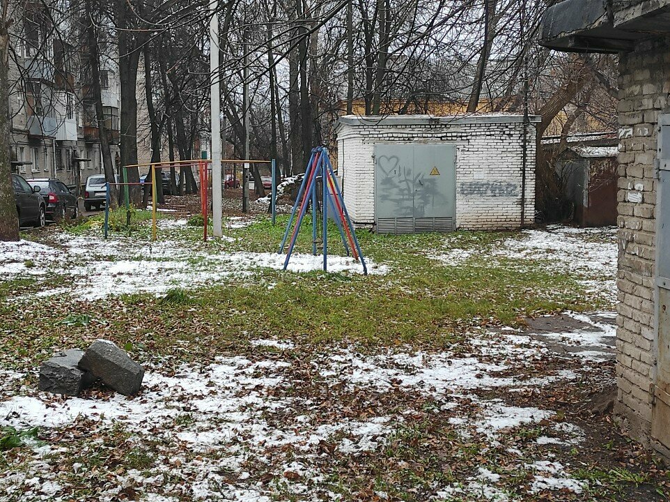 Такие детские площадки наверное в первобытном строе существовали. Причем рядом с помойкой, гаражами и трансформаторной будкой за которой спят лица без определенного места жительства в пьяном состоянии.