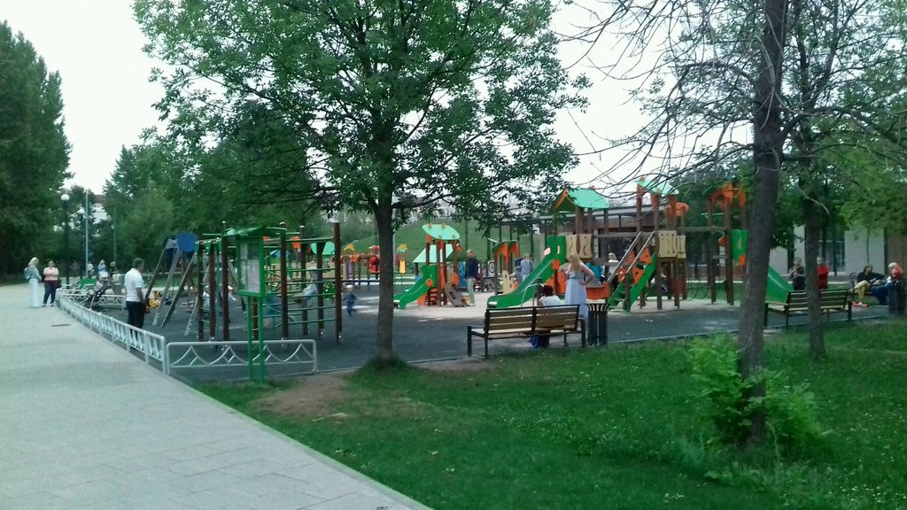 Неплохая площадка. Но! Качели паутинка пострянно сломаны. Песочница очень маленькая. И всего одни качели с сиденьем для малышей. Пострянно очереди на них.