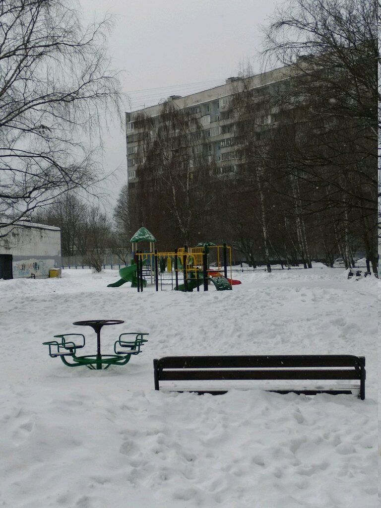На фото площадка в нашем дворе, 3 звезды потому, странно, что не почищена площадка, обычно чистая, нет ни одних качелей, маленькая песочница.