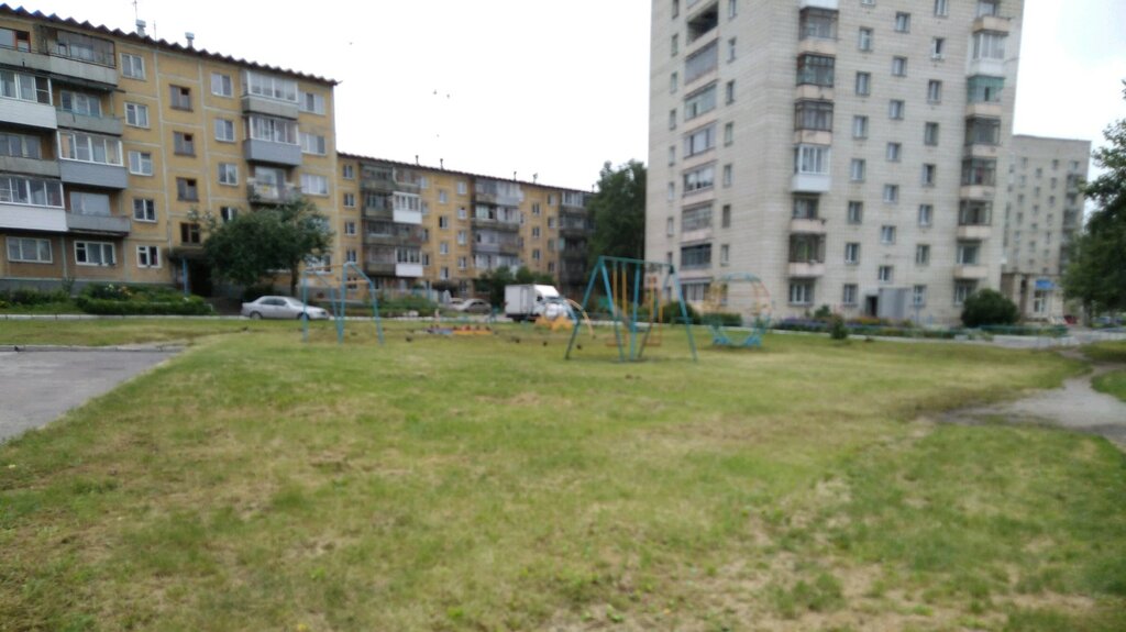 Одно название "детская площадка". Хорошо хоть газон стригут. Хотя нам в детстве и меньшего хватало для веселья