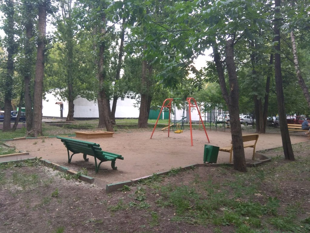 Детской площадкой это назвать сложно :качели " а-ля 70-е" и песочница такая же. Зато для алкашей самое то... Особенно в тёплое время года! Всю ночь орут, "гуляют", с открытым окном спать невозможно.