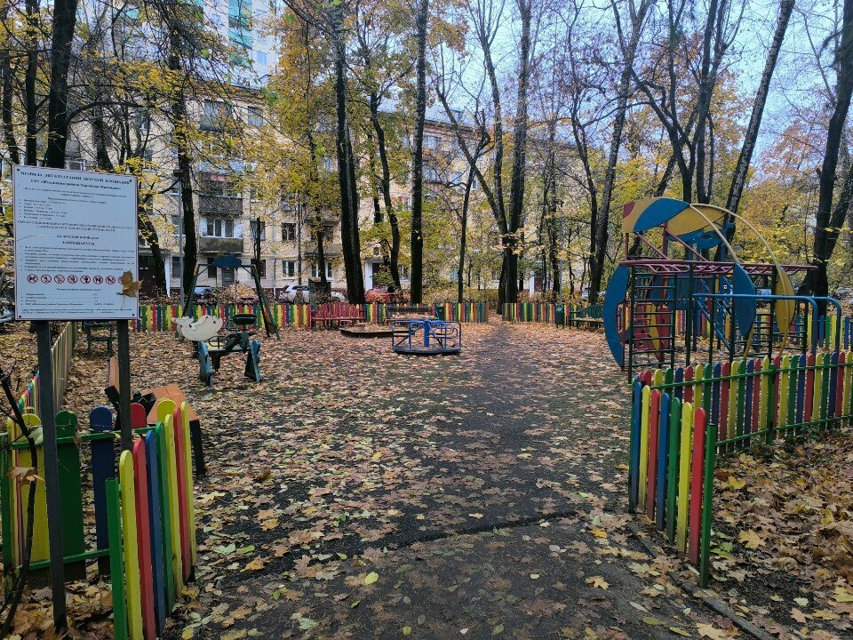 Эта детская площадка находится перед моим под'ездом. Все дети соседей играют на ней. Мне она очень нравится.