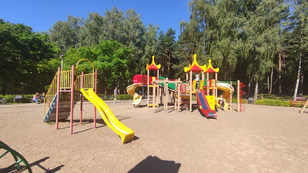 I liked the playground, but on a hot day I will have to wait for the evening for the shadow to come. There are slides for kids and for older children. Several sandboxes, swings. There are tables with roofs and benches nearby. I really liked it there, even if it was already a shabby playground