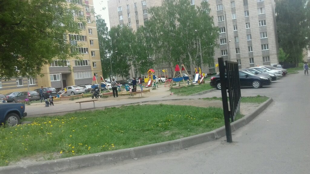 Только для слишком маленьких, песочница не закрывается, не помешало бы оградить забором, т.к. мячи летят на припаркованные машины и целый день воет сигнализация