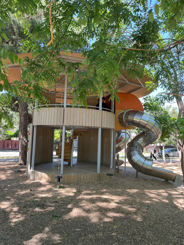 Приятная детская площадка ,хорошие горки .Площадка в тени деревьев ,что бережет горки от эффекта «раскаленных сковородок» )рядом много лавочек ,где можно посидеть и почитать книгу или посмотреть фильм ,пока детишки наслаждаются детством 😌👍