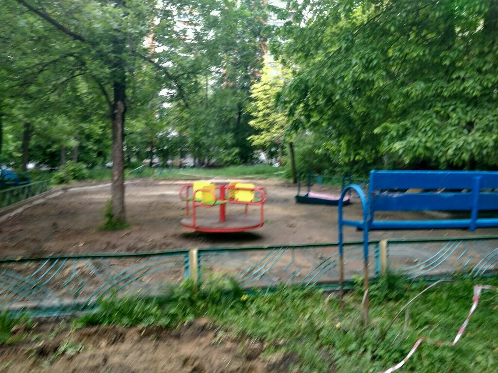 Земля засыпанна гравием, дети маленькие постоянно спотыкаются и все коленки уже стерли. А постарше нашли новую игру, кидатьсч друг в друга этими камешками. Если кто то из управы района это сообщение увидит. Огромная просьба вернуть резиное покрытие на площадку и наказать тех кто нарушил госты