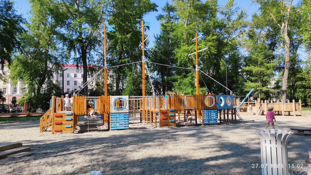Новая детская площадка ужасная, ребёнку очень не понравилась, был в слезах когда увидел этот ужас! Старая площадка, была прикольнее, более интересная. На новой площадке можно легко подскользнуться или получить травмы.