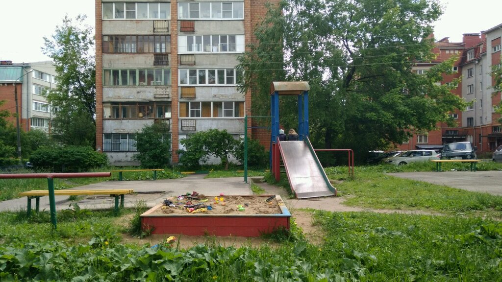 Поставили в августе 2020 года новые качели, песочницу, какие-то ещё конструкции для детей. И поставили всё это к водопроводным и отопительным трубам... Чем думали, когда ставили? Около песочницы бетонная плита, в которую трубы уходят. В общем, установили всё как-то без ума и о детях не подумали.