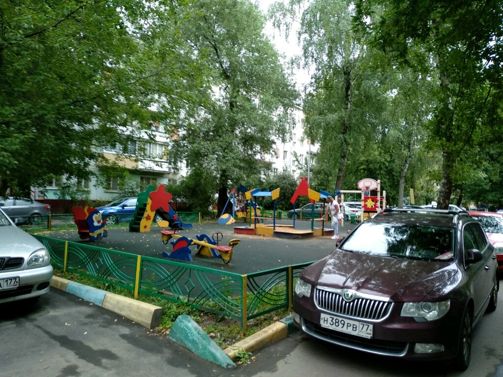 Площадка хорошая,но почти со всех сторон стоят машины(которые дают выхлоп),для детей это не очень хорошо.