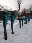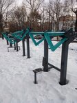 Детская площадка , на которой находится и спортивная площадка с силовыми тренажёрами . Тренажёры неизвестной "породы ", неудобны по своему функционалу и многие замки для фиксации груза уже сломаны . А до замков высокого тренажёра достать вообще невозможно !