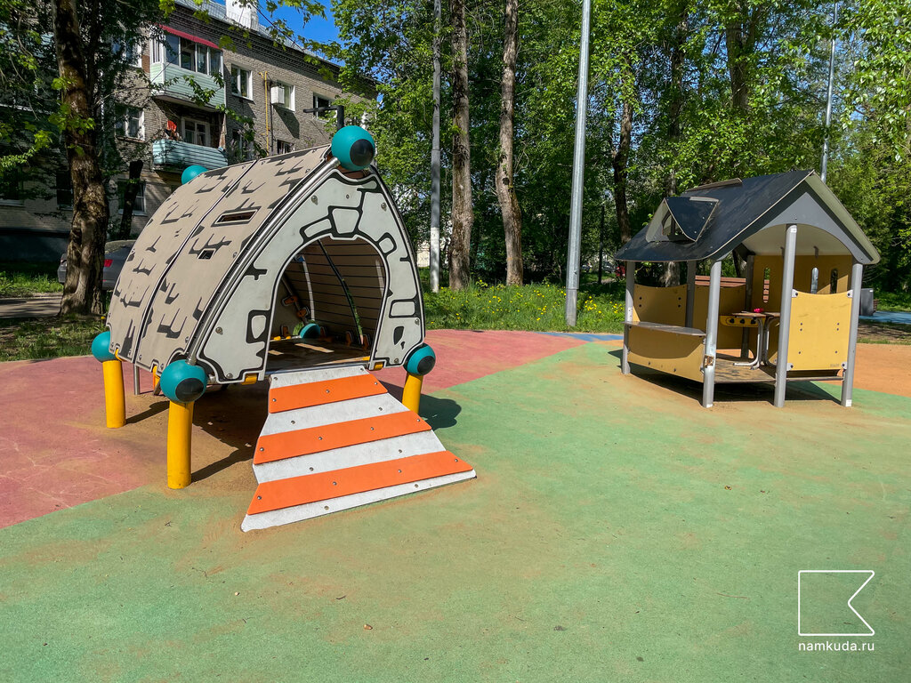 Площадка очень нравится. Курящих и пьющих на ней никогда не видела. Малыши любят играть в домиках. Но в мяч там не поиграешь - площадка находится под наклоном.