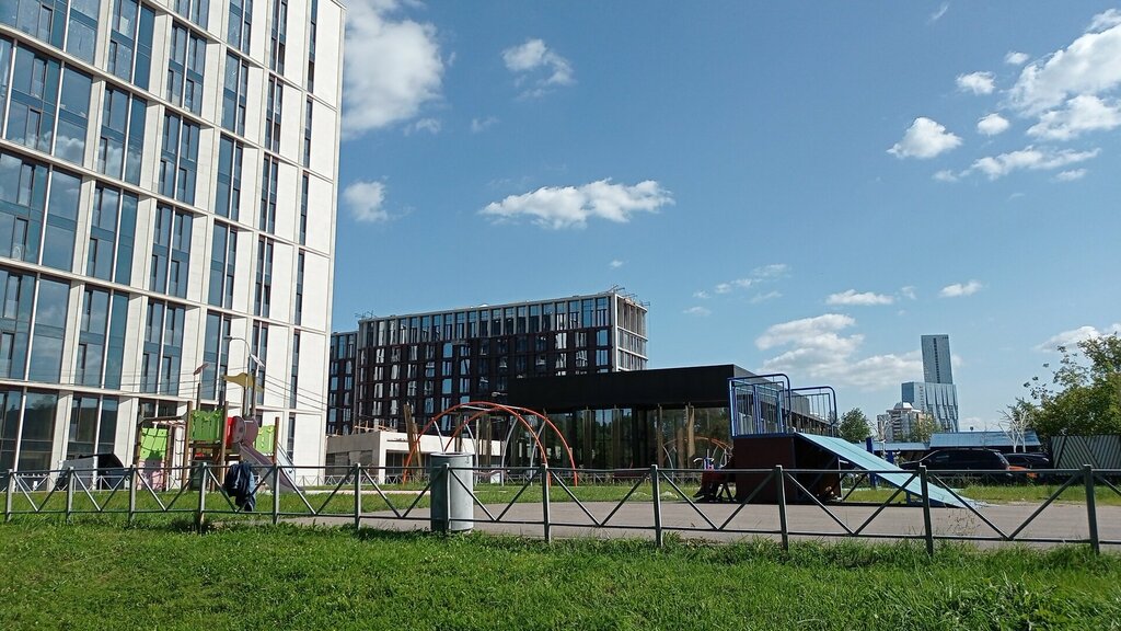 Очень грустная площадка на самом солнцепёке и рядом стройка. На скейтах кататься норм. Недалеко есть другая суперская детская площадка