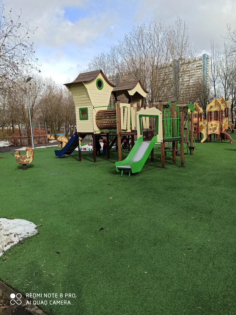 Площадка для малышей. Есть 2 качели взрослые, 1 круглая, качалки для малышей, избушка на курьих ножках, песочница, горки-лазилки. Плохо только, что часто ветренно на ней, так как находится между двух домов на возвышении. И по весне большие лужи вокруг. Иногда заглядываем на неё по пути в библиотеку, но не более того. Специально бы не шла к ней.
