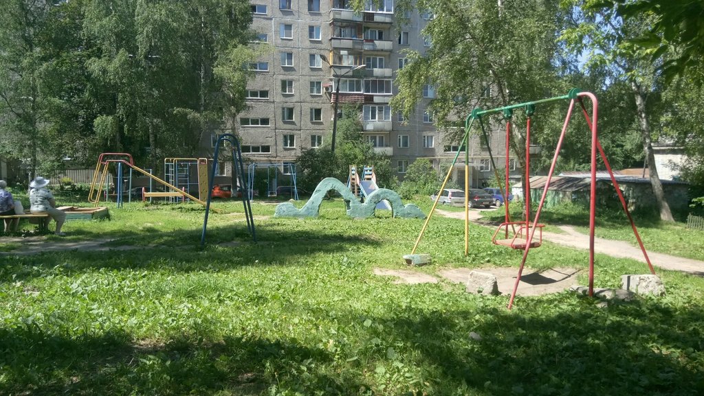 Площадка хорошая, жаль очень старая. Каждый год её по старой краске снова красят. Дети с удовольствием играют, особенно качели из советских времен.