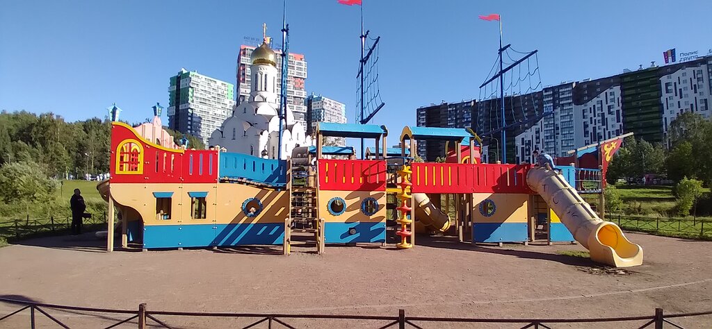 В данный момент (с 2022 по 2025 год ) вторая половина парка закрыта и туда попасть нельзя. Капитально переделали и площадку, теперь это не корабль а кит. А из плюсов парк очень хороший, спокойный, красивый и что самое главное вблизи от дома.