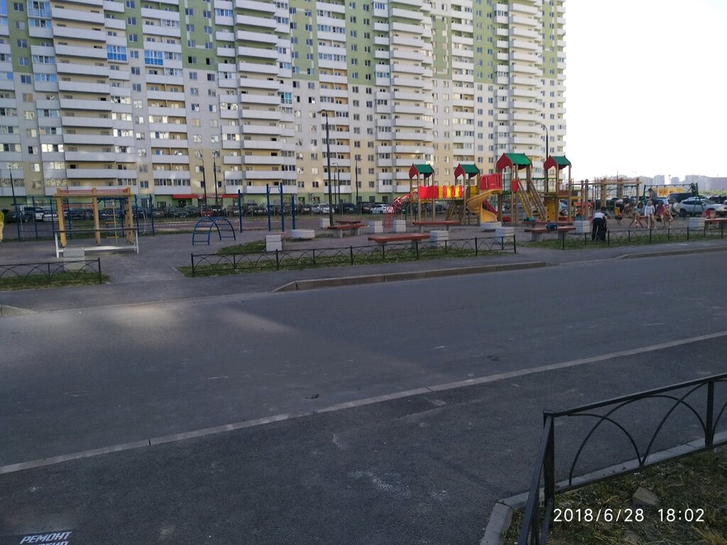 Очень маленькая площадка. Несмотря на то, что эта площадка у нас во дворе, мои дети не любят на ней гулять. Всего 2 качели, одна из которых для самых маленьких. В песочнице почти нет песка. Покрытие на площадке это отдельная тема, дети просто месят жижу грязную. Есть тренажеры, но с момента установки один сразу приказал жить долго, до сих пор его никто не починил