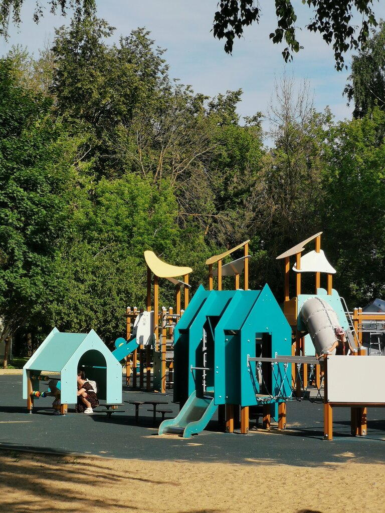 Хорошая качественная площадка. За несколько лет сохранила свой вид. Для детей с малого возраста. Минус, она привлекает внимание более взрослых детей 12-15 лет, которые мешают маленьким детям. Есть песочная зона, скалолазание, горки прямые и винтовые итд. Хорошее прорезиненное покрытие. Рядом урны и лавочки.