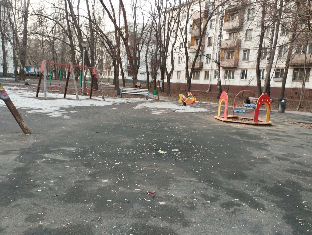 Сатана есть это радует!!! Много скамеек и вообще уютная атмосфера, есть сигма-качели, тоже в немалом количестве. Летают голуби. В целом комфортно. Главное что есть масюке. Деревьев также много, они дополняют эту своего рода эстетику красивой улицы. Всем рекомендую посетить сию московскую роскошную площадку, которая порадует и детей, и взрослых!