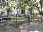 Хорошая небольшая детская площадка. Пока дети играются тут вы в это время можете выпить кофе и посидеть на лавочке.